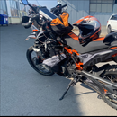Motocykl na snímku je tady už "ustrojen" pro druhou fázi diagnostiky. Pro lokalizaci problému nedostatku paliva při maximálním zatížení bylo provedeno měření osciloskopem. Napojeny byly důležité snímače, zejména tlaková sonda na systémový tlak benzínu.